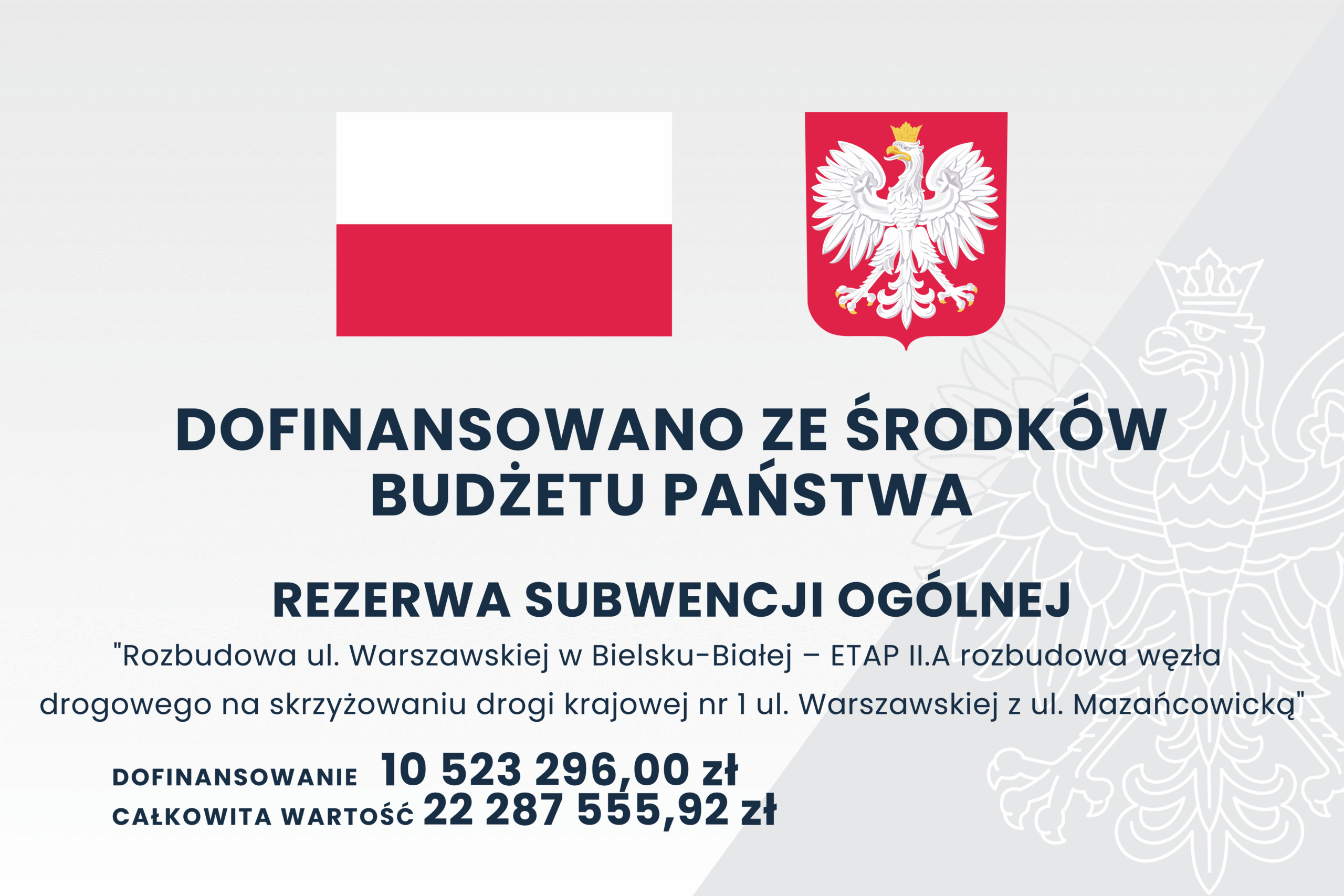 „Rozbudowa ul. Warszawskiej w Bielsku-Białej od projektowanego węzła na skrzyżowaniu ul. Warszawskiej z ul. Mazańcowicką do granicy miasta – jezdnia zachodnia”.