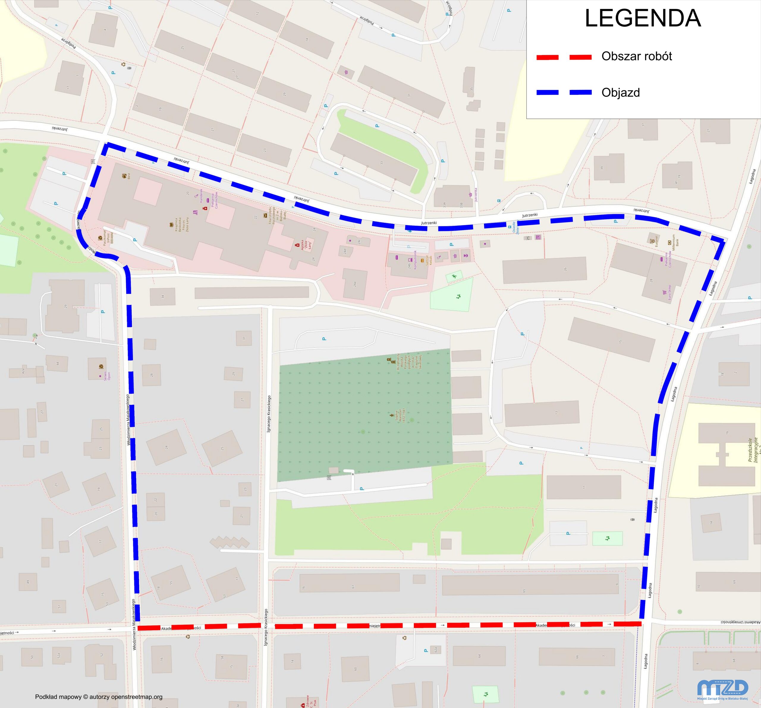 Informujemy, że od 24 października przez okres ok. 2,5 miesiąca zostanie wprowadzony pierwszy etap tymczasowej organizacji ruchu dla zadania „Rozbudowa odcinka ul. Akademii Umiejętności w Bielsku-Białej”. Podczas tego etapu wyłączony z ruchu samochodowego zostanie odcinek ul. Akademii Umiejętności na odcinku od ul. Włodzimierza Majakowskiego do ul. Łagodnej. Umożliwiony zostanie dojazd do parkingu zlokalizowanego przy posesji nr 60 na ul. Akademii Umiejętności. Objazd do ul. Łagodnej prowadzony będzie ulicą Jutrzenki, natomiast objazd do ul. Ignacego Krasickiego prowadzony będzie ulicami Jutrzenki, Łagodną, Bolesława Prusa.