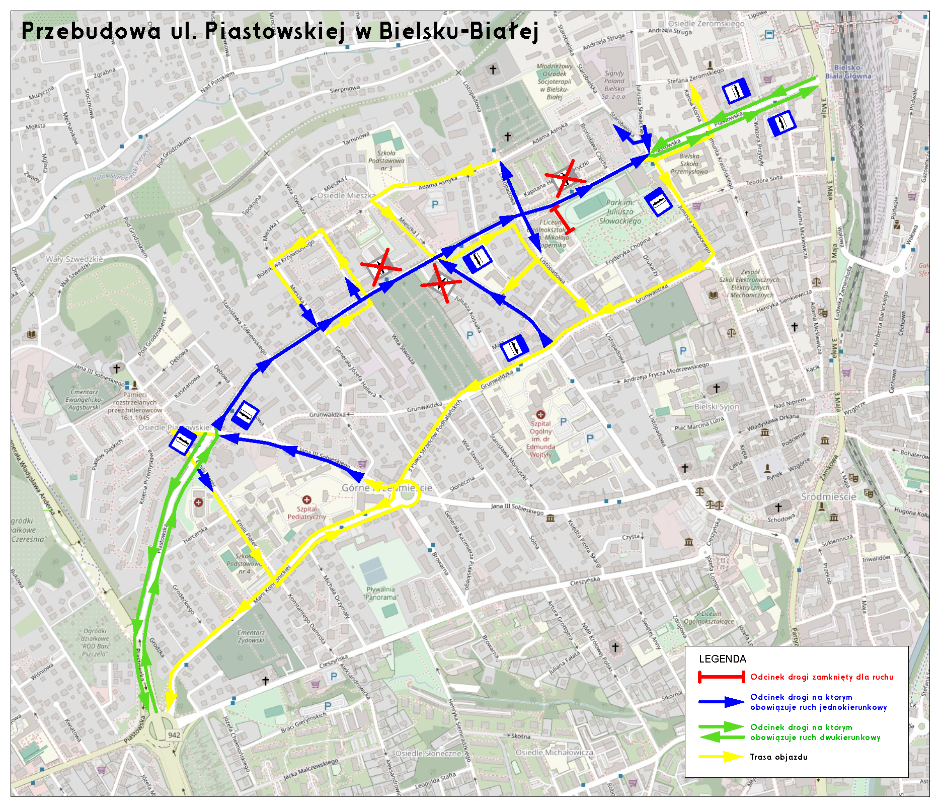 Informujemy, że od 8 kwietnia przez okres około 8 miesięcy wprowadzona zostanie zmiana organizacji ruchu na ul. Piastowskiej. Zamiany w ruchu polegać będą na: